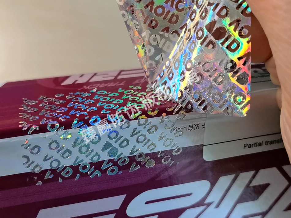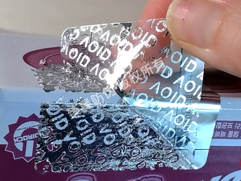 特点:标签采用多层结构叠加而成,包括塑料载体薄膜、分离层、带全息图的成像层等。当标签被揭开时,分离层会发挥作用,使得预设的文字或图案被分离出基材并留在承贴物上。同时,标签的油墨附着力强,刻板掉字清晰、立体感强,进一步增强了防伪效果。